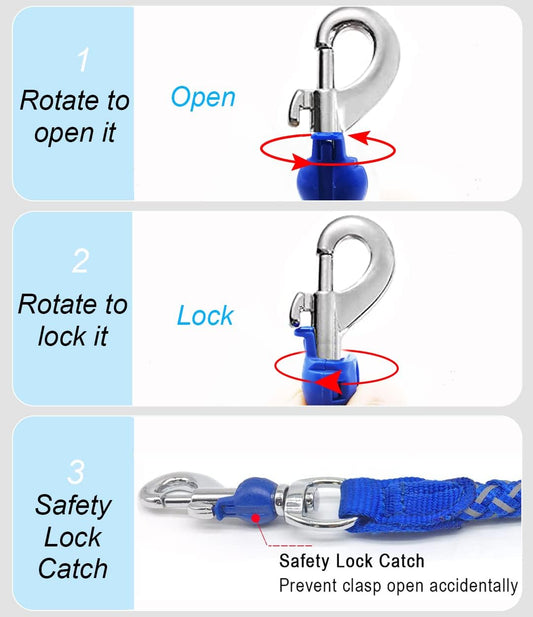 6 FT Blue Heavy Duty Rope Dog Leash, Reflective, Soft Padded Handle, 3/4 Inch Thick, Safety Lock Catch for Large, Medium Dogs