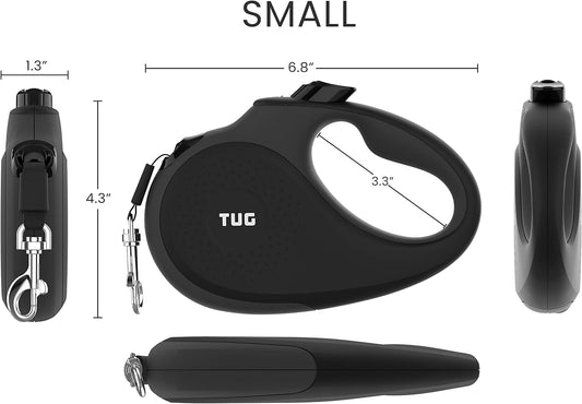 360° Tangle-Free Retractable Dog Leash with Anti-Slip Handle | 16 Ft Strong Nylon Tape | One-Handed Brake, Pause, Lock (Small, Black/Grey)