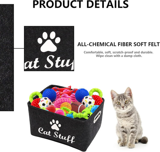 Cat Apparel & Accessories/Cat Toys/Pet Supplies Storage Basket/Bin with Handles, Collapsible & Convenient Storage Solution for Office, Bedroom, Closet, Toys, Laundry(Dark Grey)