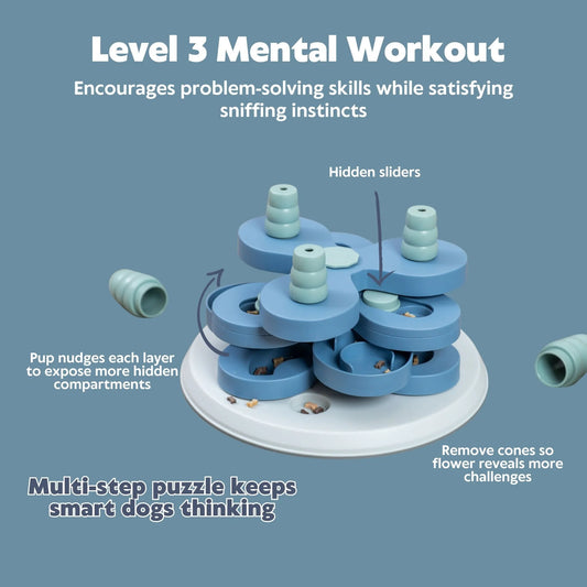 Dog Activity Flower Strategy Game, Level 3, Advanced Dog Puzzle Toy, Treat Dispenser